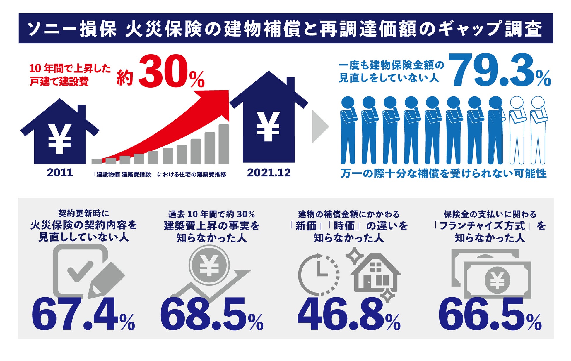 ウッドショックなどにより過去10年間で木造住宅の建設費は約30%アップ 一方で建物保険金額の見直しをしていない人は約8割にものぼる〜建築費の高騰により万一の際、同等住宅の再建が難しいケースも多数〜