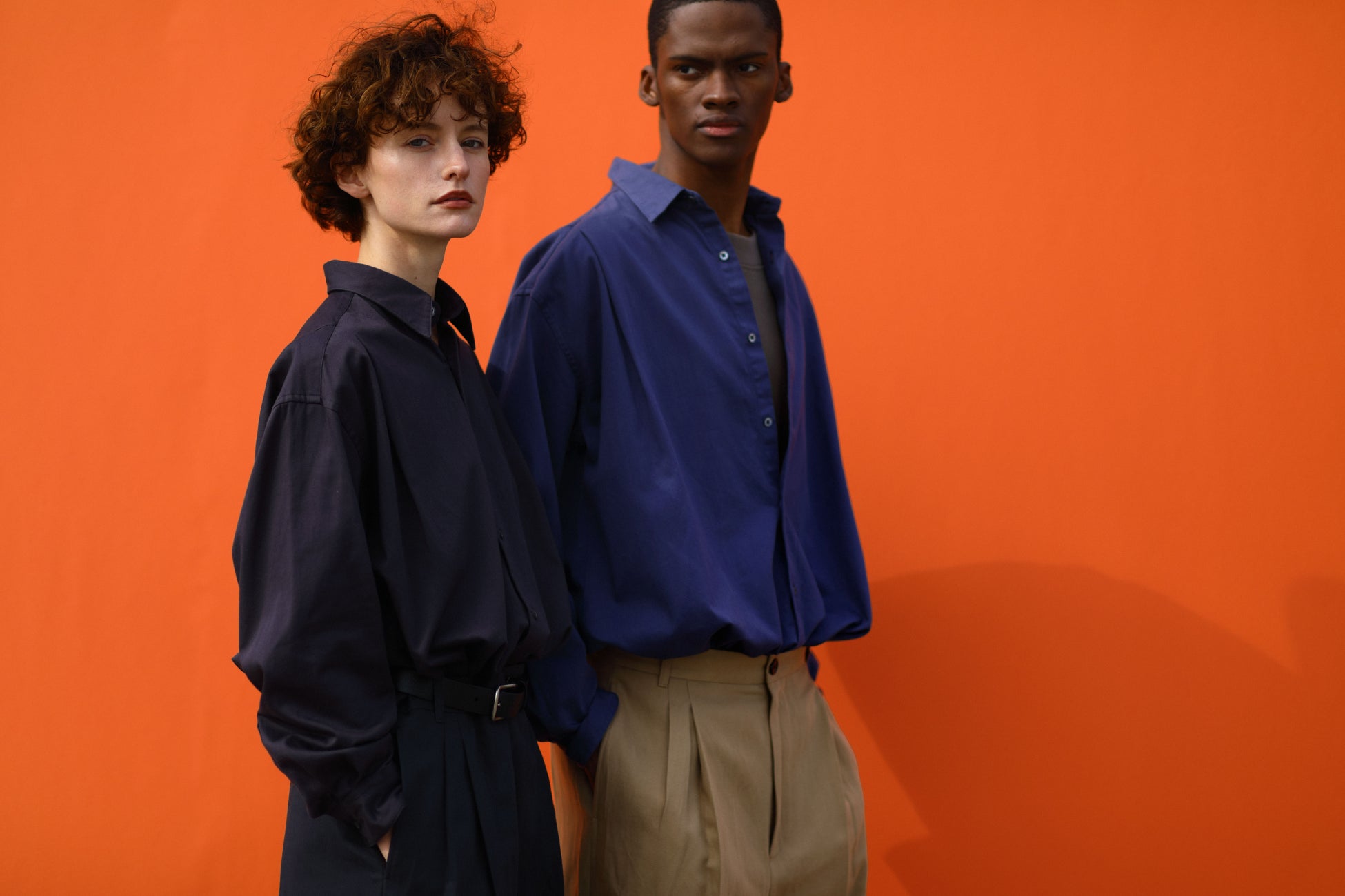 今回受注をスタートする新作は、シャツ・パンツの2アイテム。それぞれが異なる生地と2色の展開で構成されています。