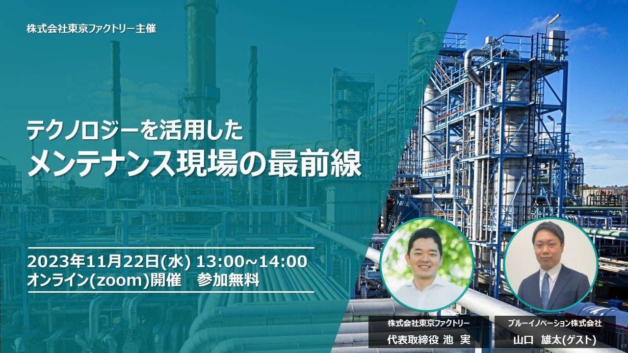 東京ファクトリー、メンテナンスDXをテーマとしたオンラインセミナーを2023年11月22日(水)に開催