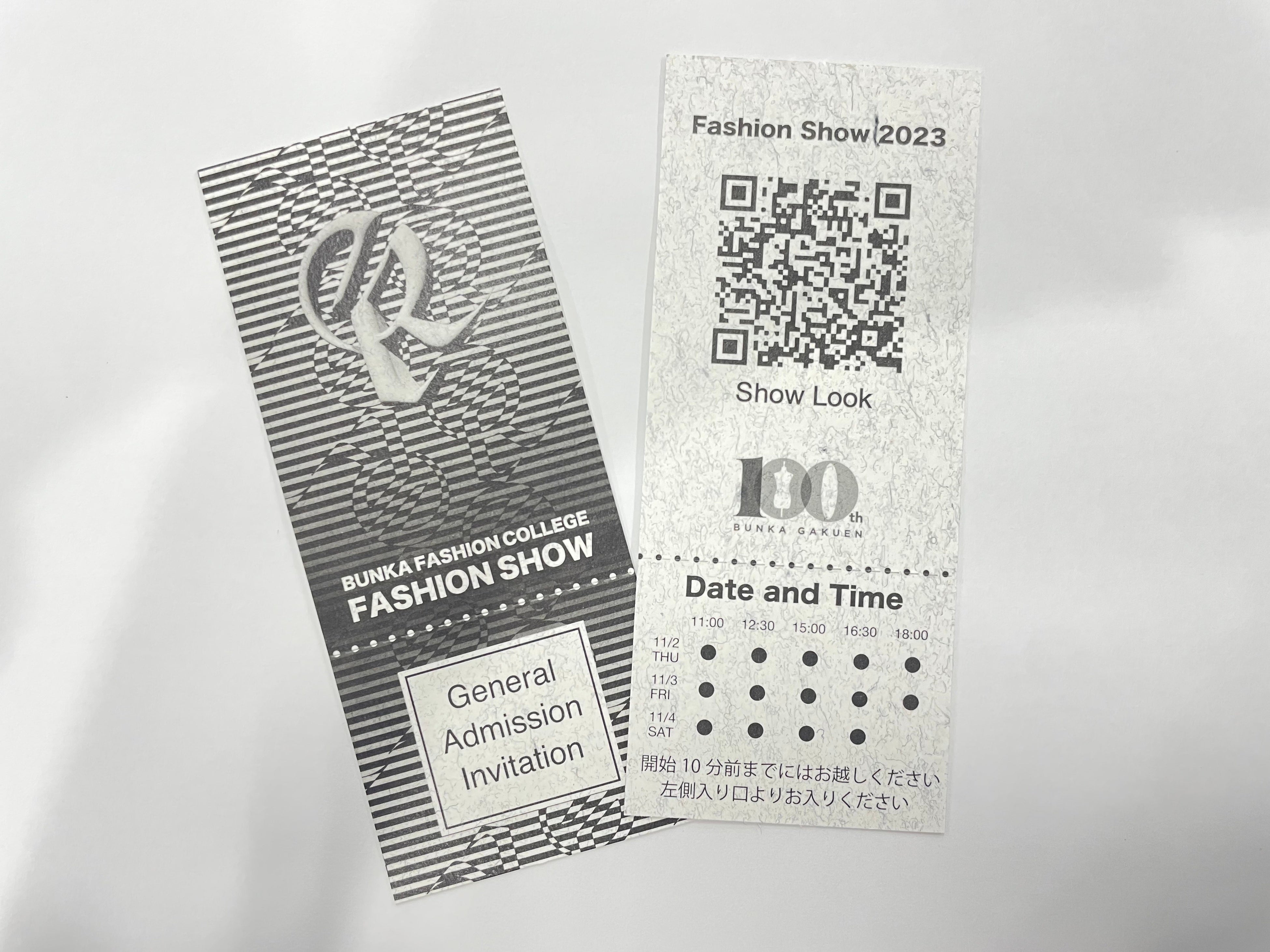 衣服由来のリサイクルペーパーを使用し、在校生がデザインしたチケット