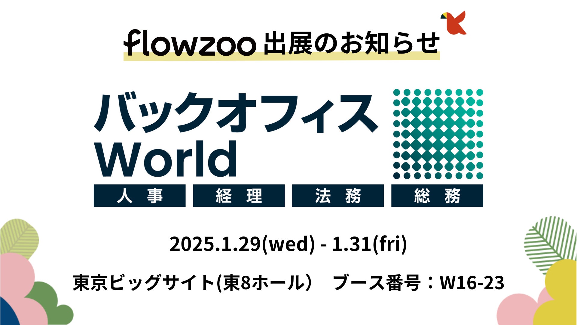 業務管理システム「flowzoo」、人事・経理・総務・法務向けの総合展「バックオフィスWorld 2025 春 東京」出展のお知らせ