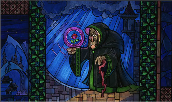 ”真実の愛”を象徴する魔法の薔薇。時が経つにつれて花びらが儚く散っていくと共に少しずつ仲を深め、愛が芽生え始めていく二人…。様々な困難を乗り越え、二人は真実の愛に気付きます。花びらが散りゆく様子をエンゲージリングに、そして気持ちが通じ合っていく様子をマリッジリングに3色のマテリアルで表現しました。