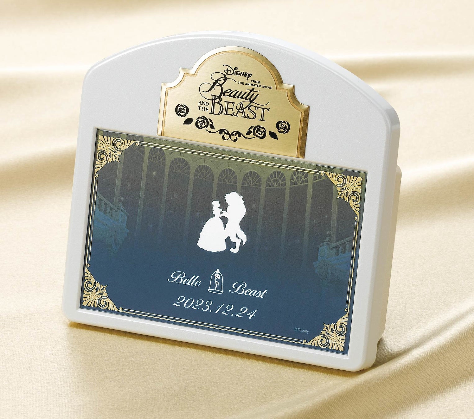 - マリッジリングペアもしくはエンゲージリングをご成約でプレゼント。曲はディズニーアニメーション映画『美女と野獣』の主題歌「Beauty and the Beast」。フレーム内のアート部分にお客様のお名前や記念日を印字できるのも特別なポイント。また絵柄を付属のアートカードや写真などに差替えると違ったイメージ感をお楽しみいただけます。