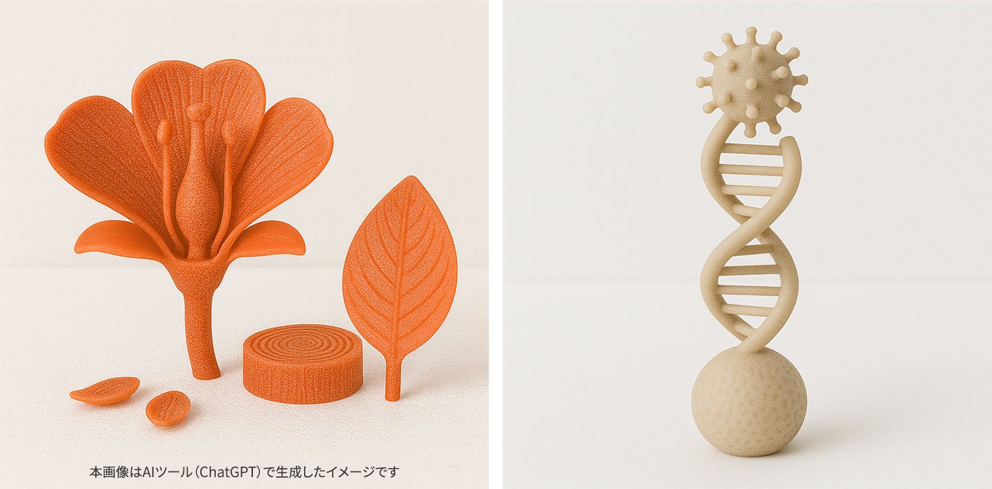 従来は入手が難しかった、あるいは再現が困難だった教材についても、3Dプリンターを活用することで、触れて学ぶ事ができます。