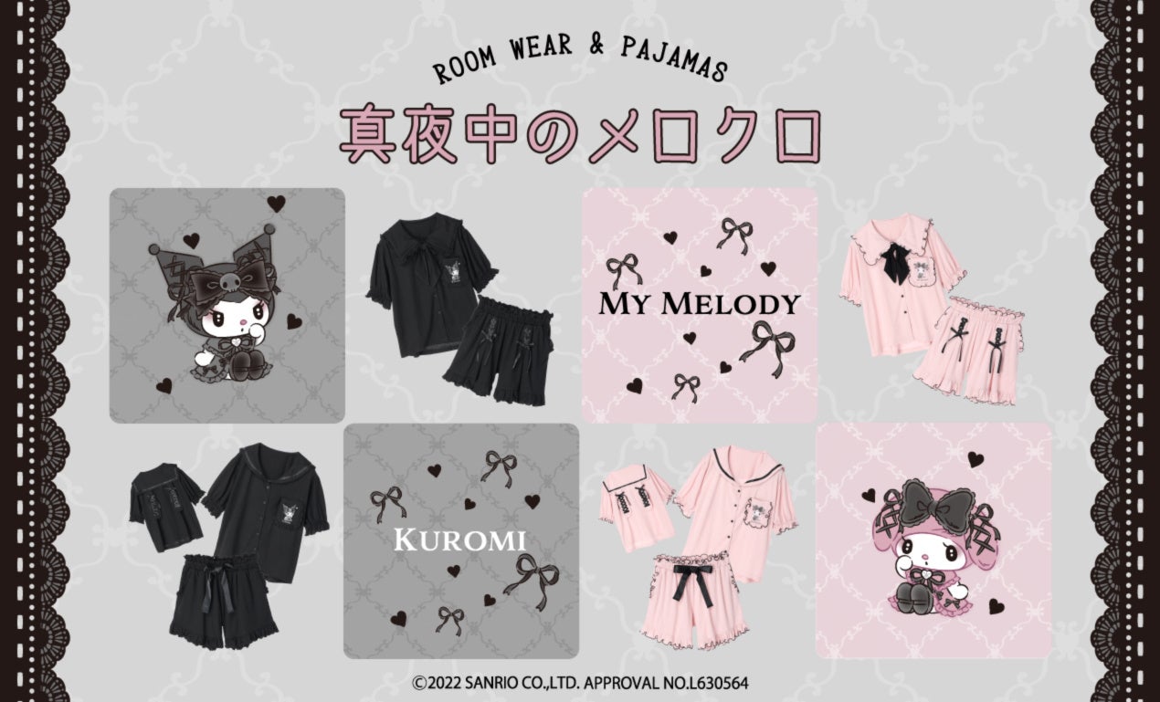 リーズ“マイメロディマイメロディ クロミ 真夜中のメロクロデザイン”のルームウェアが登場!