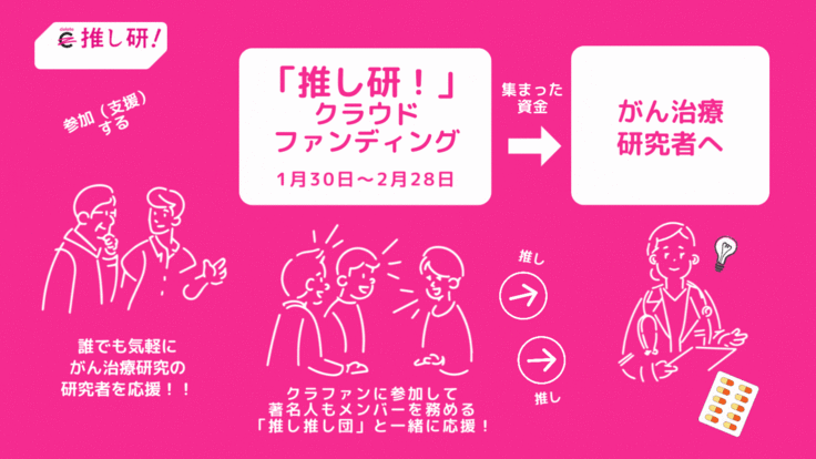 クラファン、買い物、音楽、スポーツなどのアクションで、誰もが気軽に応援 ~アイドルを推すかのように、がん治療研究を自分にできる方法で推そう!~