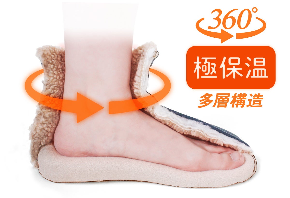また、厚めの中敷きが床からの冷気を遮断し、足先から足の裏まで暖かい構造です。
