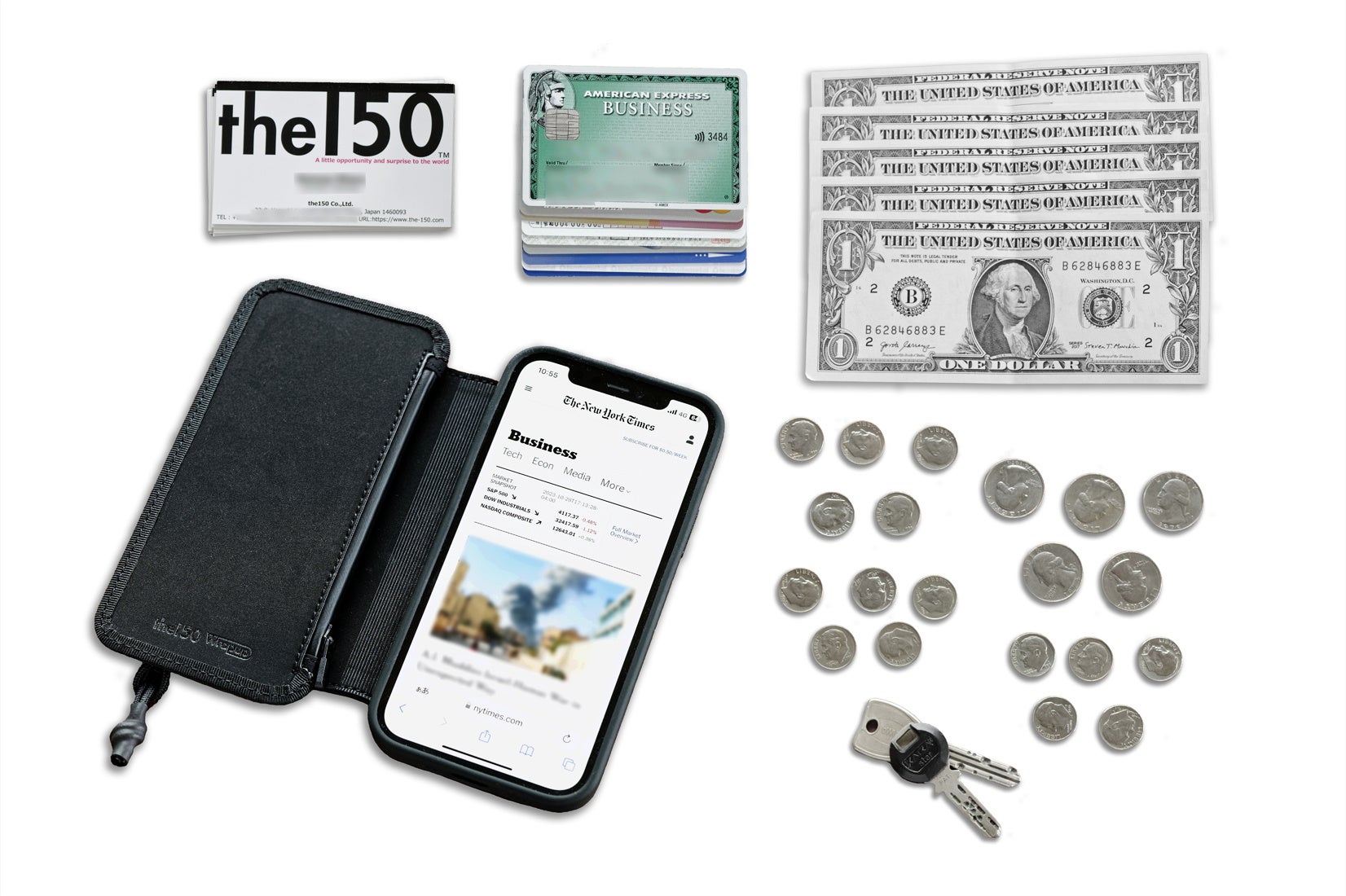 薄い財布・大容量財布の良いとこ取りをした財布一体型iPhoneケースです。キャッシュレス化の進行と共に財布は小型化し、現金の使用頻度は減りつつあります。Wrapupは、iPhoneに「薄さ」「大容量」「使いやすさ」の財布機能を装備した次世代のiPhoneケースです。昨今の小型財布において、もはや当たり前になりつつある「薄さ」。それと両立が難しいのが「使いやすさ・十分な容量・デザイン性」です。特に「使いやすさ」「容量」は、「薄さ」と相反する関係にあり、どちらかを優先すればどちらかが犠牲になるのが一般的です。Wrapupは、この難題を解決し「薄さ」「大容量」どちらも兼ね備えた、私たちthe150の代名詞ともいえる財布一体型iPhoneケースです。