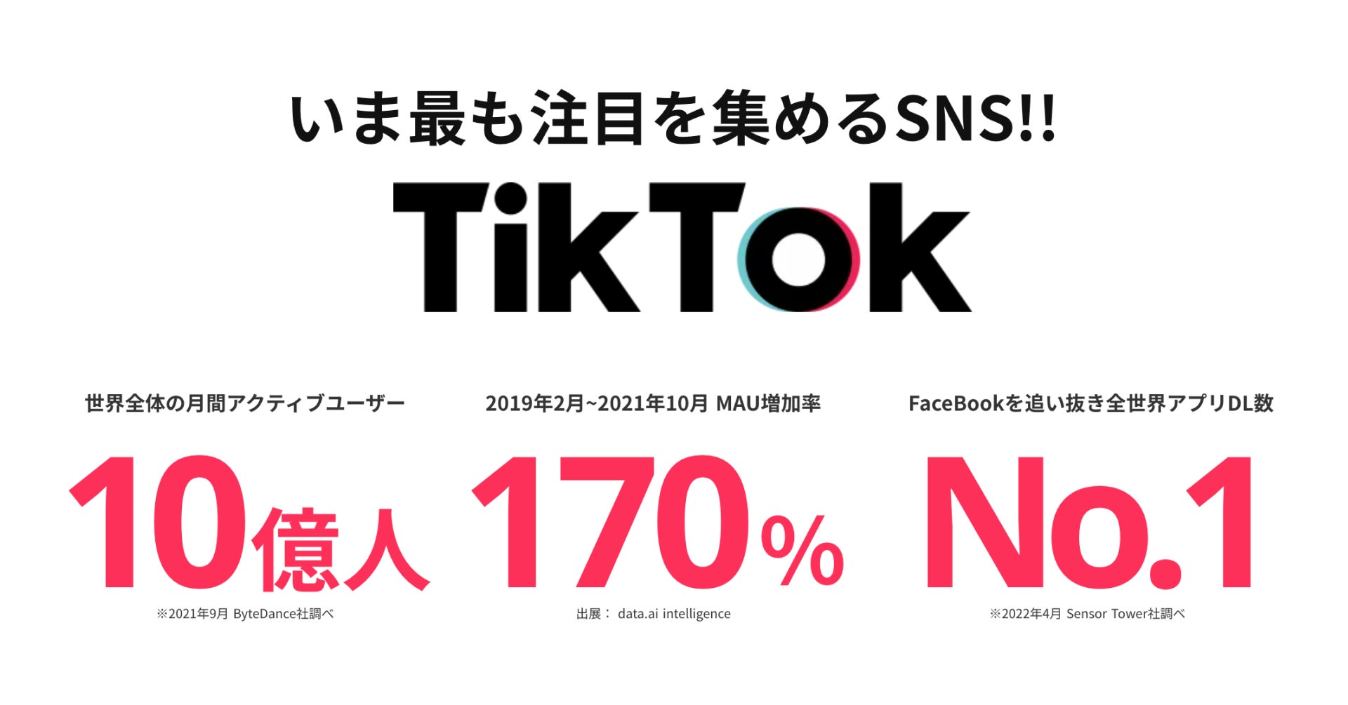 情報拡散姓が高く、ユーザーの利用時間の長さや反応率の高さから広告プラットフォームとしても注目を集めており、マーケティング・プロモーションの一環として、TikTokを運用する企業も急速に増加しています。
