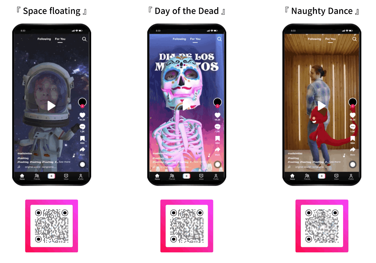 TikTokアプリがインストールされているスマートフォンでQRコードを読み込むとエフェクトをお試しできます!