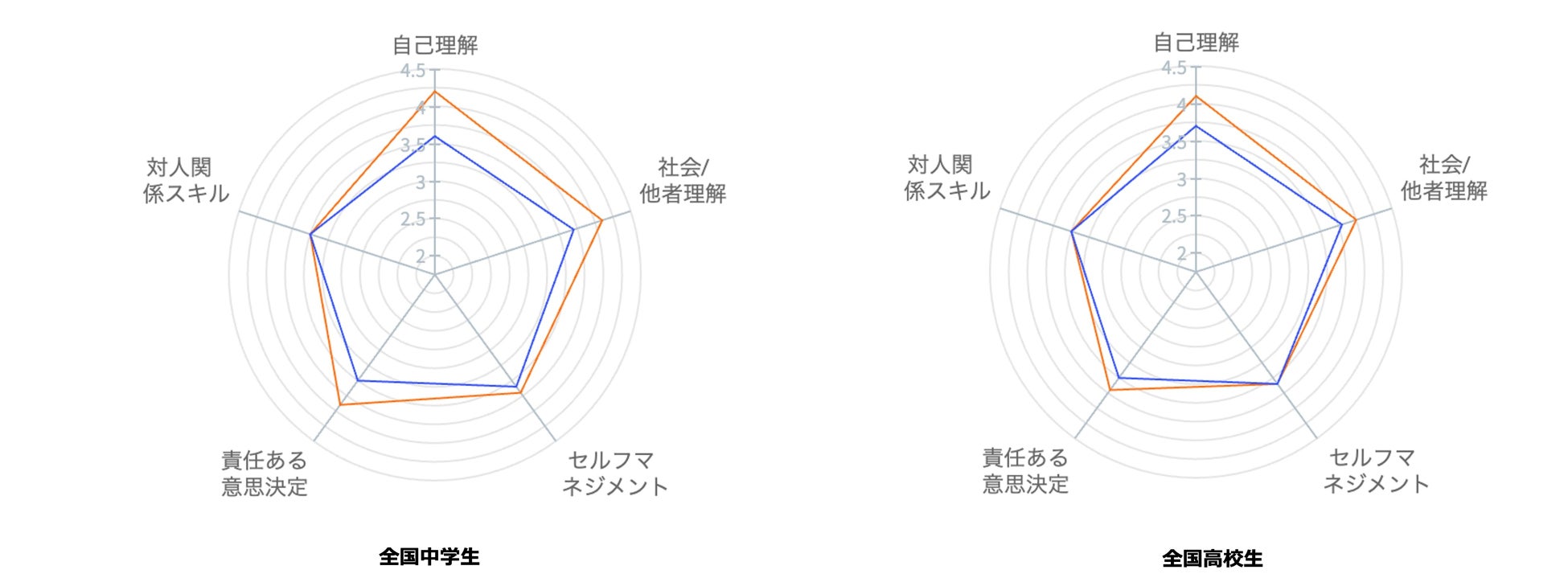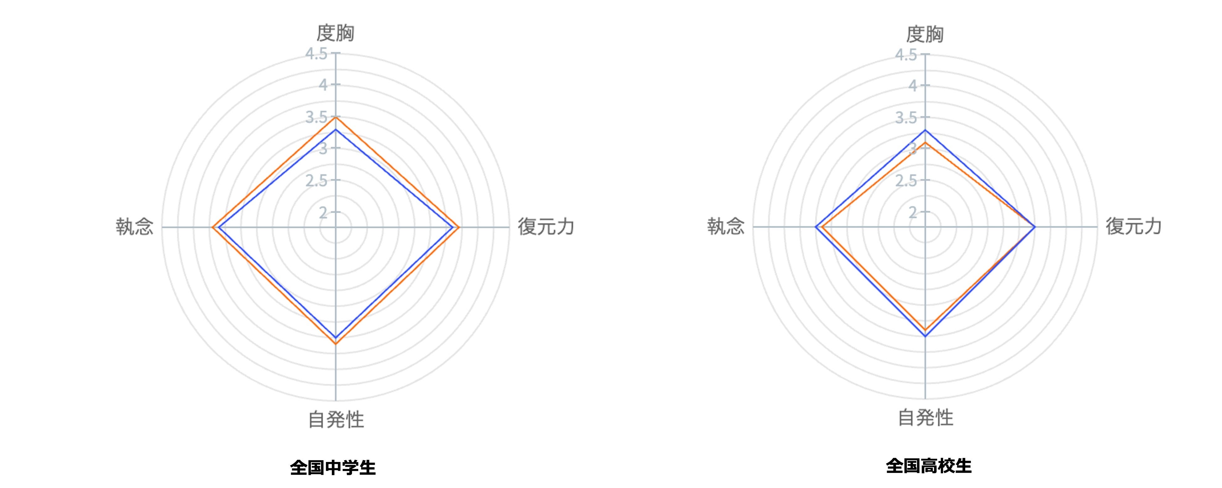 やり抜く力を指す「GRIT」のカテゴリでは、中学生・高校生ともにいずれの項目も大きな成長は見られませんでした。普段、学業や部活動で忙しい学生にとって、貴重な長期休暇を使用し、何か新しいチャレンジを行うことで「GRIT」の成長も期待できると考えます。