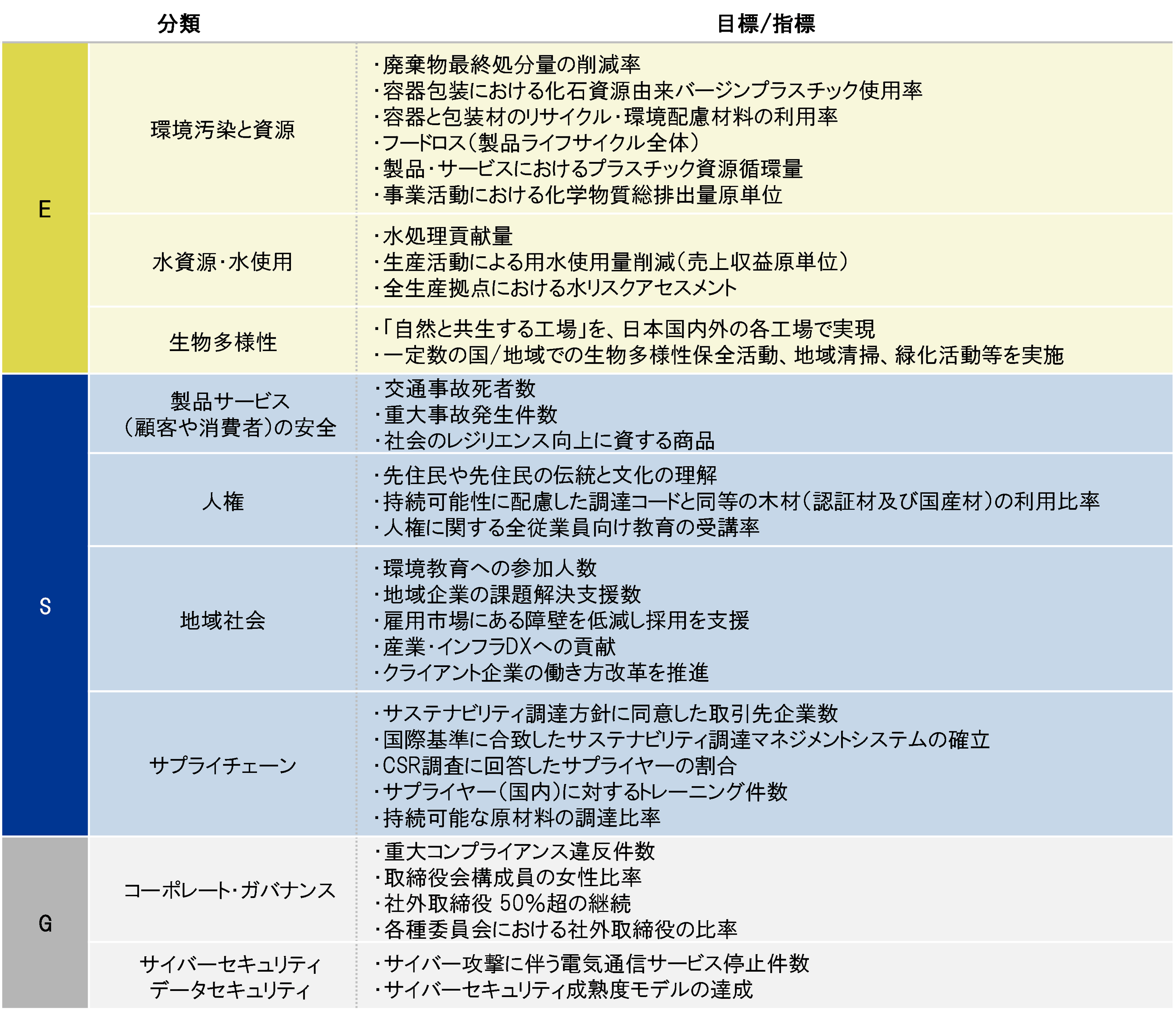 Appendix 1:サステナビリティ関連の指標と目標の事例
