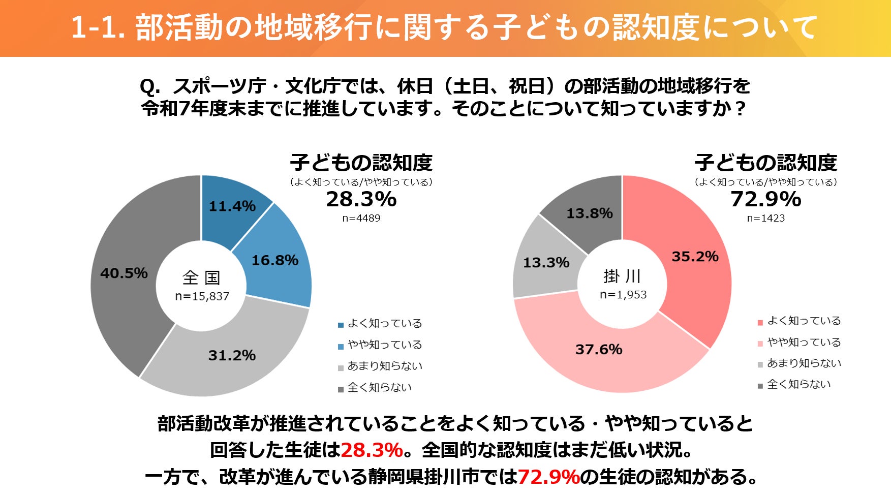 「部活動の地域移行」が推進されていることを認知している(よく知っている・やや知っていると回答)生徒は28.3%