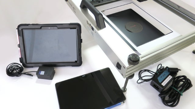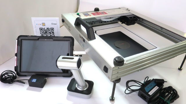 「基本セット一式」にデータ転送用のQRリーダーが1台付属します。その場でお客様にデータをアップロードしていただき、そのデータをプリントするイベントキットのレンタルプランです。