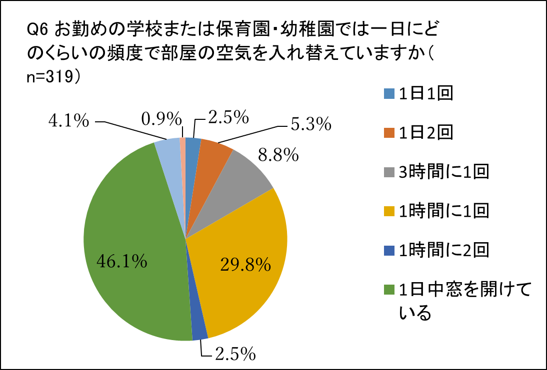 - 厚生労働省の示している換気の目安30分に1回に達していない施設は46.4%と約半数