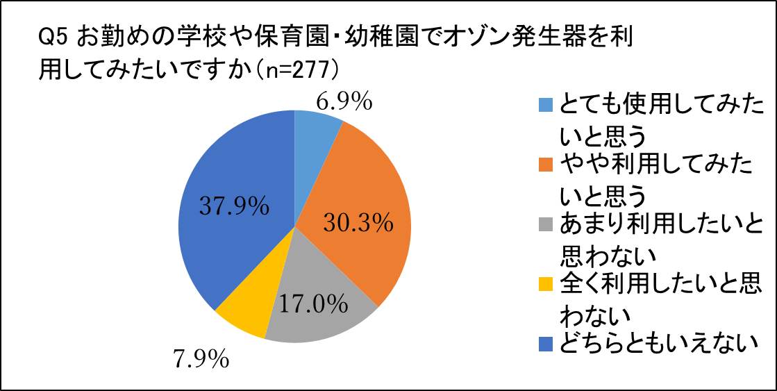 次に「お勤めの学校や保育園・幼稚園でオゾン発生器を利用してみたいですか」という質問では、