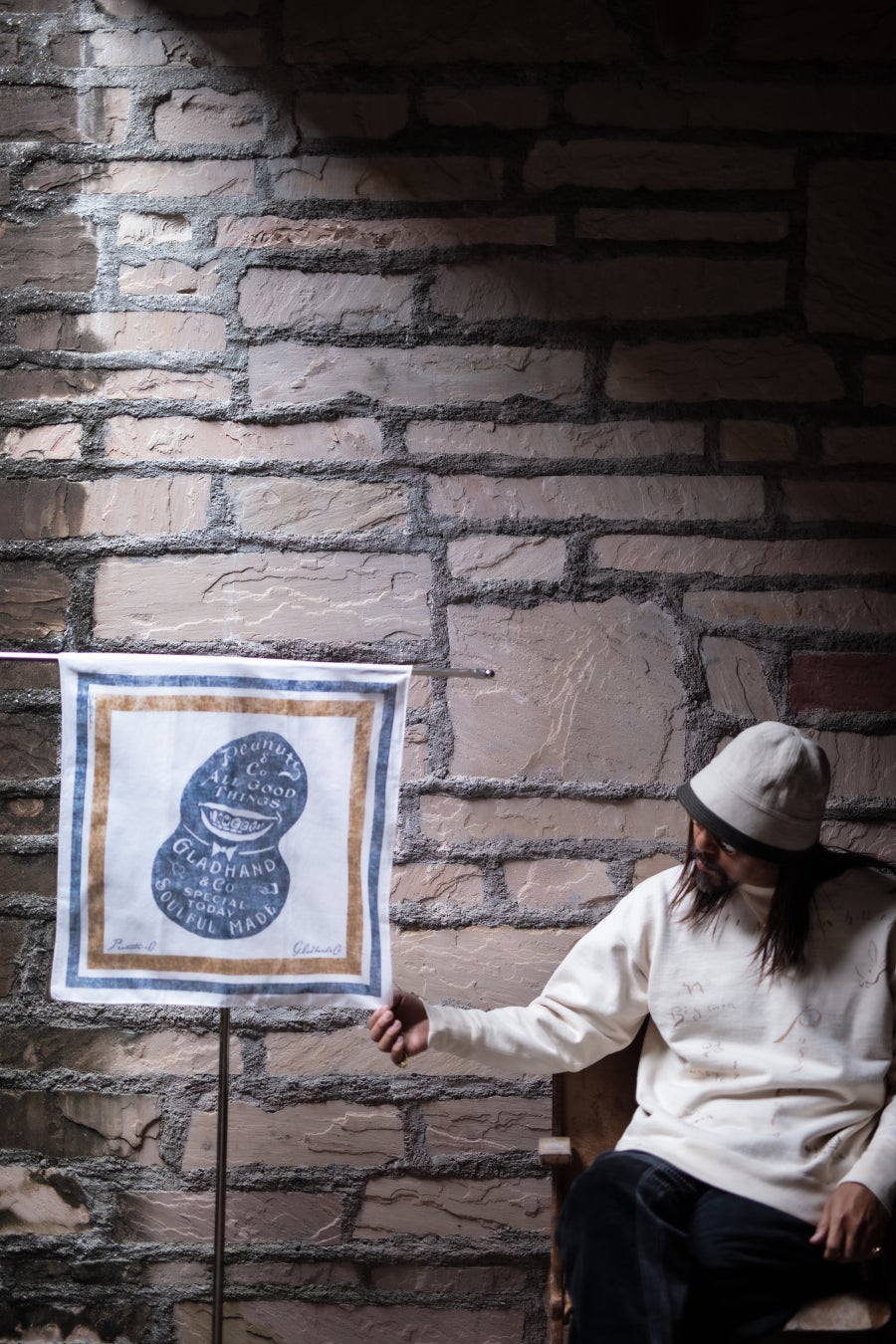 仕上げは1枚1枚手作業で落花生の殻で染め上げた、遊び心の効かせたアイテム