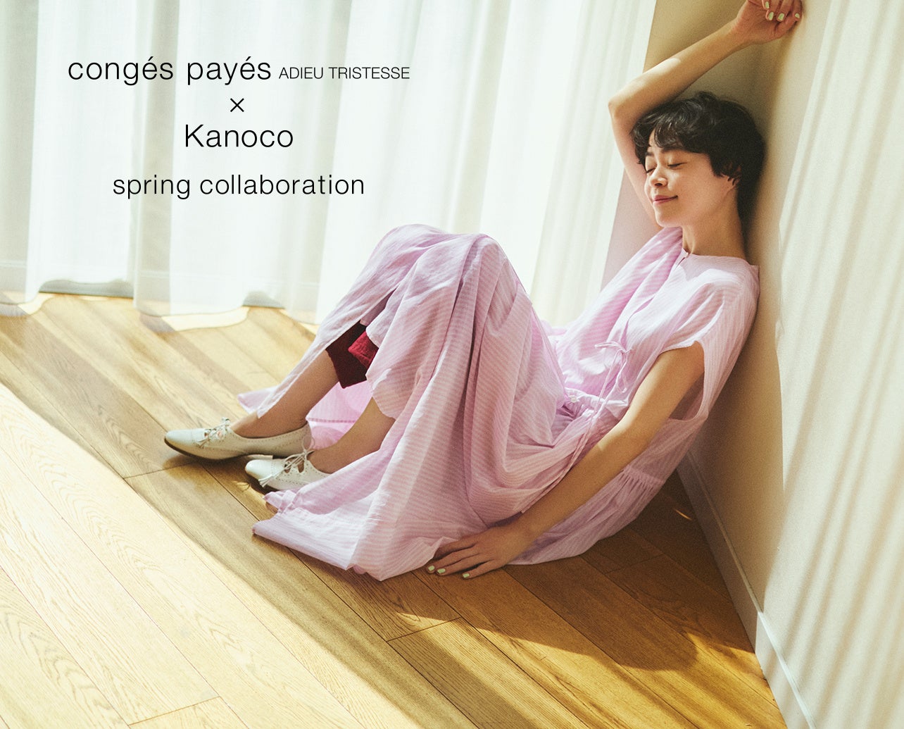 congés payés ADIEU TRISTESSEとモデルKanocoさんとのコラボレーションアイテムが発売。第三弾となる今回は、軽やかなワンピースとブラウスを展開します。