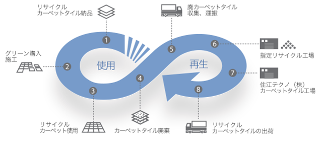 ・利用する家具や建材は、長く使える物の利用や、環境に配慮したリサイクル素材などを活用しています。