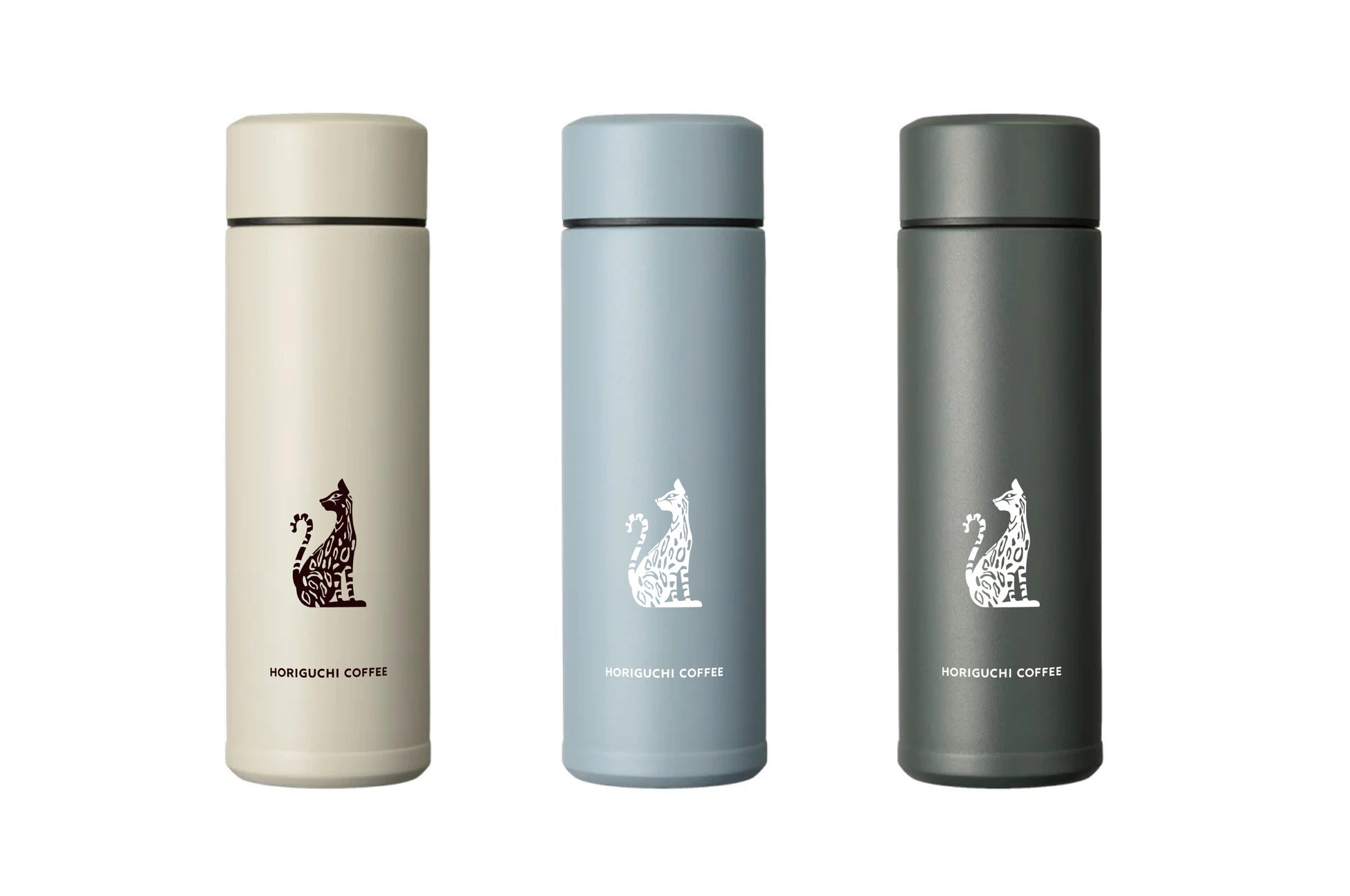 オープンを記念して、オリジナルマグボトルを数量限定で販売します。ボトルに描かれているのは、グアテマラ産のシングルオリジン「サンタカタリーナ農園グランレゼルバ」のアイコンである「ティグリージョ」。同国の森林に生息するネコ科の動物で、サンタカタリーナ農園に隣接する森林にも生息し、同農園が自然と共生していることを象徴する存在です。「サンタカタリーナ農園グランレゼルバ」は堀口珈琲を代表するシングルオリジンでもあることから、ブランド初のオリジナルマグボトルにふさわしいアイコンとして採用しました。 このマグボトルは内面にセラミック加工が施されており、コーヒーの風味を長時間良好に維持できます。カラーはホワイト・水色・グレーの3色展開で、どれも日常使いにぴったりなデザインです。