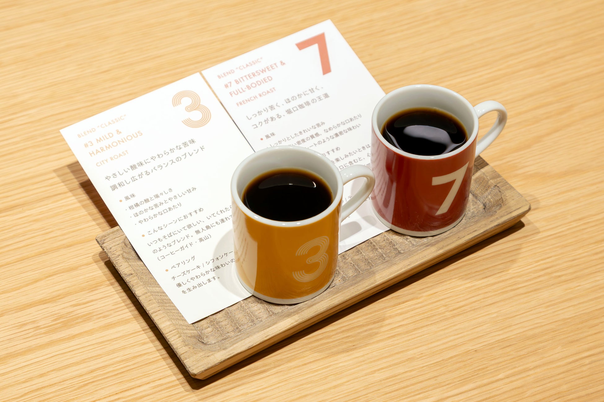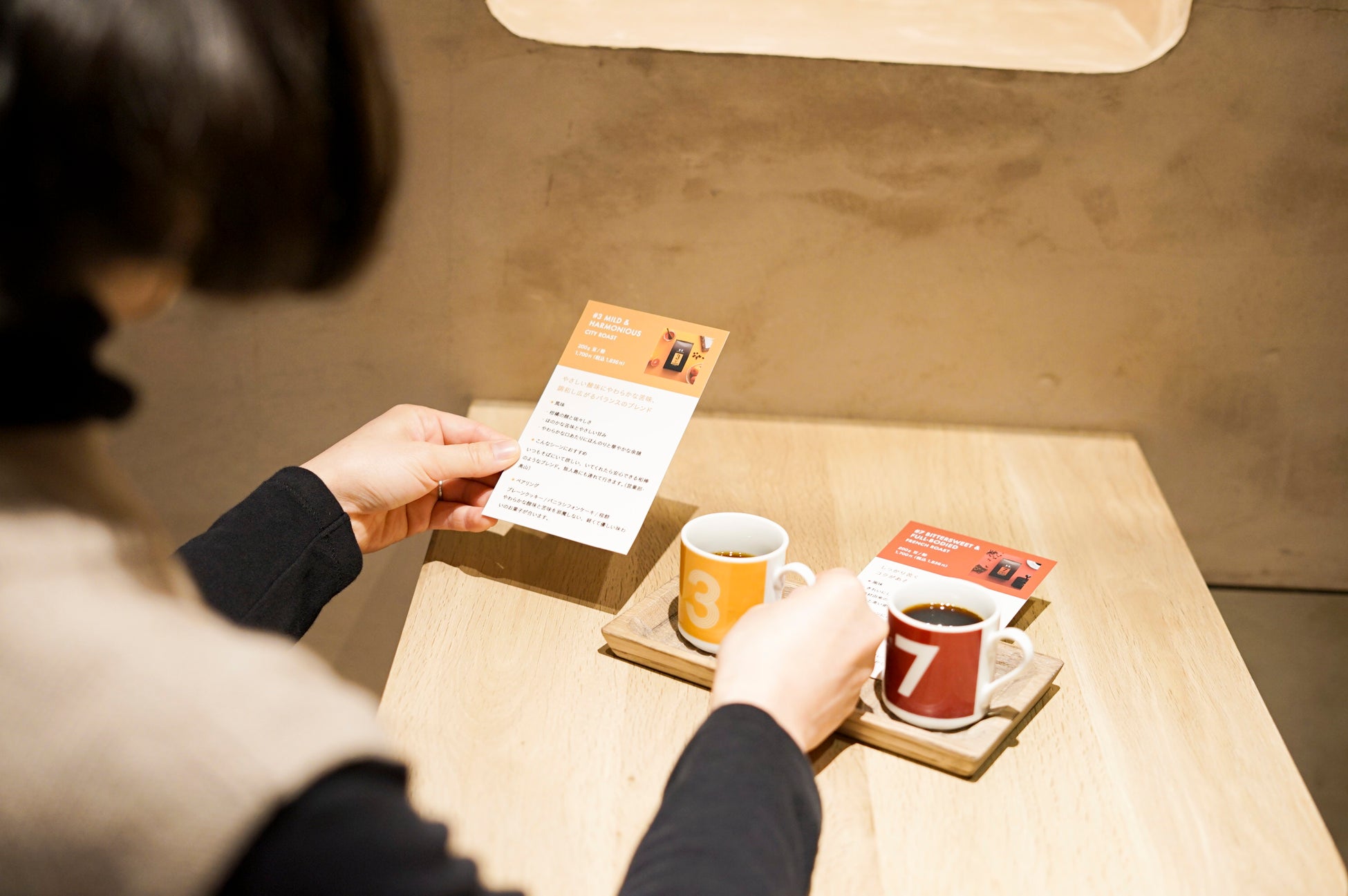 テイスティングセットは2種類のコーヒーで構成され、1種類あたりの分量は 60mLです。スペシャルティコーヒー初心者の方でも楽しめるよう、各セット にはコーヒーの風味特徴を記載した「飲み比べカード」が添えられていま す。コーヒーを飲み比べながら、香り・味わい・質感、それらの相互作用を じっくりと感じていただけます。複数の定番セットが常時お楽しみいただけ ますが、期間限定のスペシャルなセットも登場予定です。