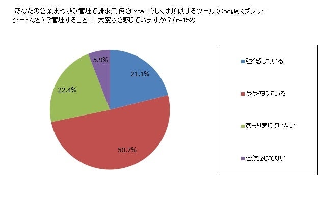 【営業まわりの事務作業実態調査】71.8%の営業職や事務職が「営業まわりの管理で請求業務をExcel、 もしくは類似するツールで管理することに大変さを感じている」と回答。