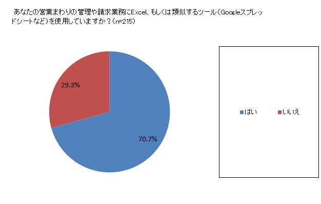 - 約7割が営業まわりの管理や請求業務にExcel、 もしくは類似するツールを使用していると回答