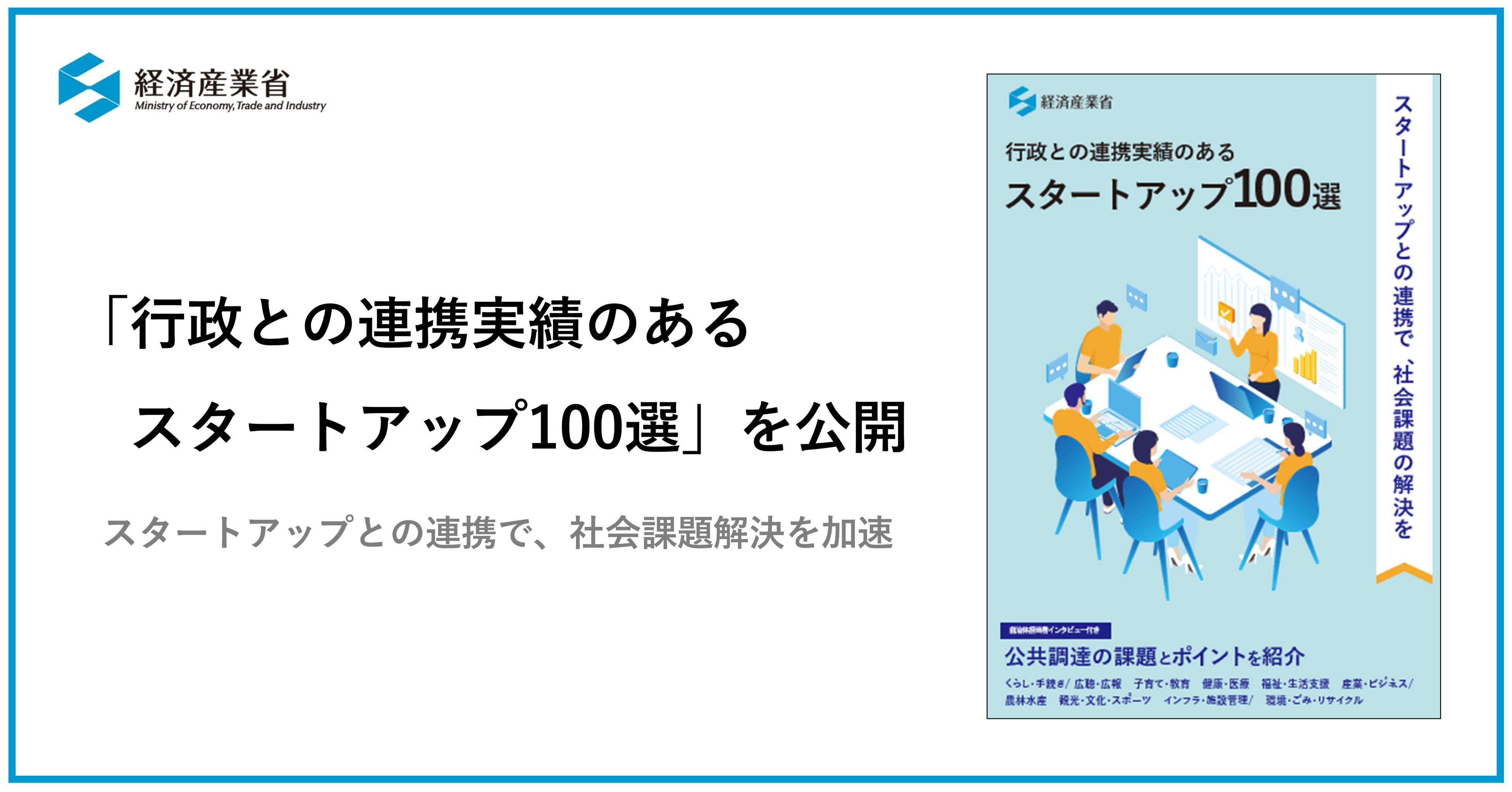 経済産業省がスタートアップと政府・自治体との連携促進に向けて、行政との連携実績のある企業を中心に事例を紹介する「行政との連携実績のあるスタートアップ100選」に株式会社トータルブレインケアが掲載されました。