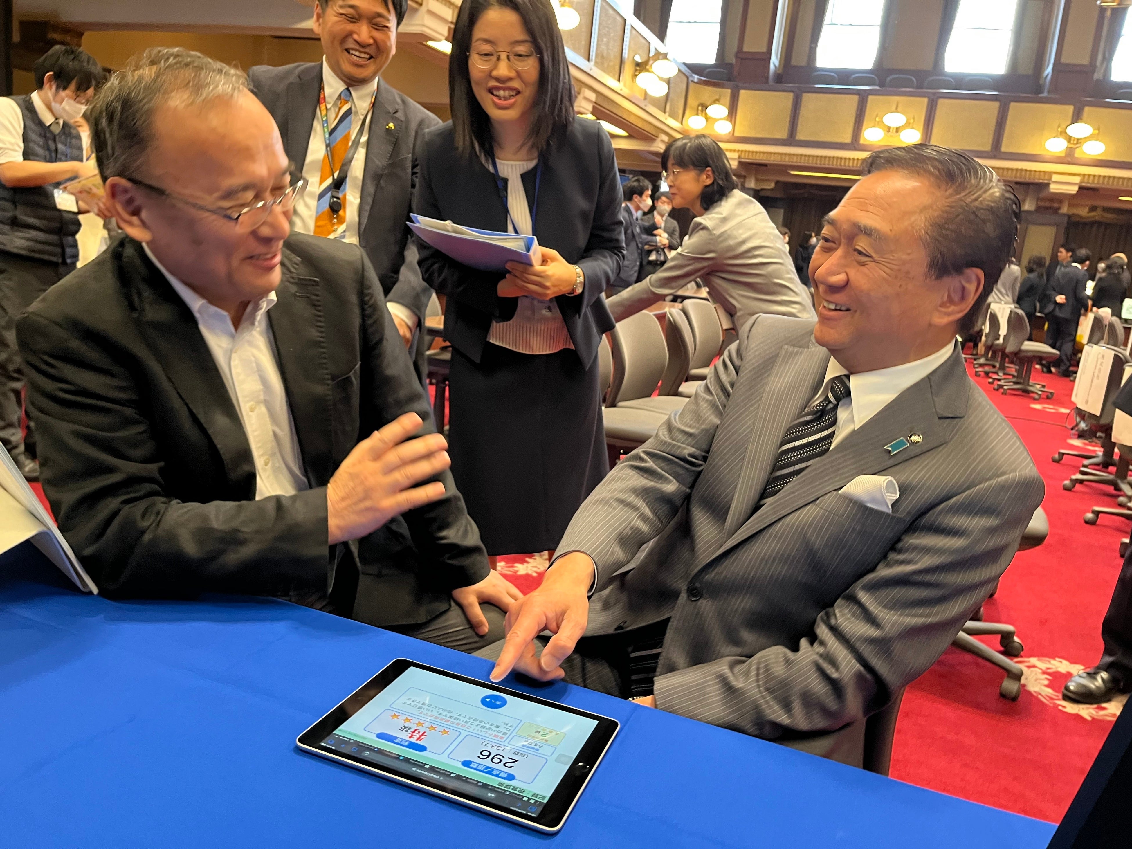 「認知機能」からのアプローチで、未病の見える化や未病の改善につながることが期待できる商品・サービスとして神奈川県のME-BYO BRANDにも認定され、4月18日に神奈川県庁で認定授与式が行われました。実際に黒岩知事にも脳体力トレーナーCogEvoをご体験いただきました。