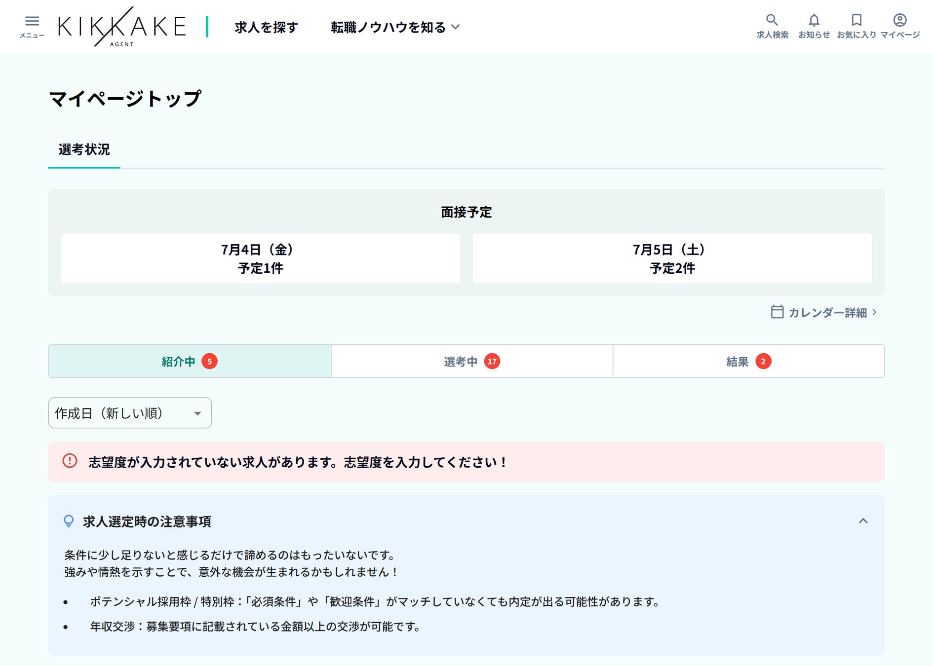 ポータルサイトで会員登録を行うと選考管理/面接日程調整ができます。自己応募の場合、応募する求人が10社あるとその分個別に選考の連絡や日程調整を行う必要があります。一方、本ポータルサイトでは、面接対応が可能な日程を設定しておけば、キャリアアドバイザーが企業との日程調整を行ってくれるため手間や負担が大幅に軽減できます。