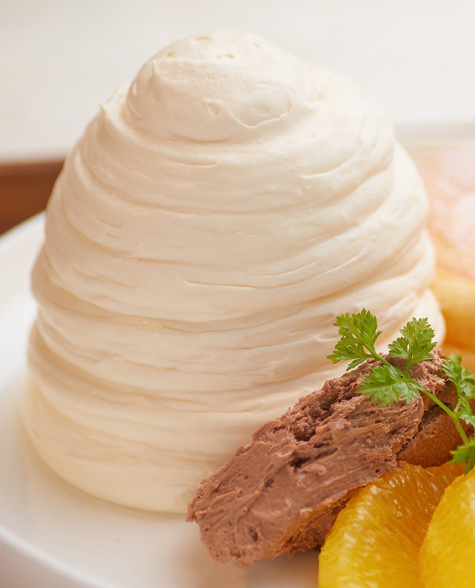 泡ミルクセーキとともに、自家製のカスタードソースをたっぷりとかけてお召し上がりください。