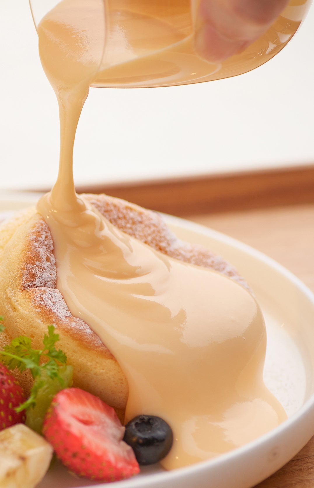 ミルクセーキを「泡」にして、濃厚なたまごパンケーキと合わせて食べる新しいパンケーキを提供