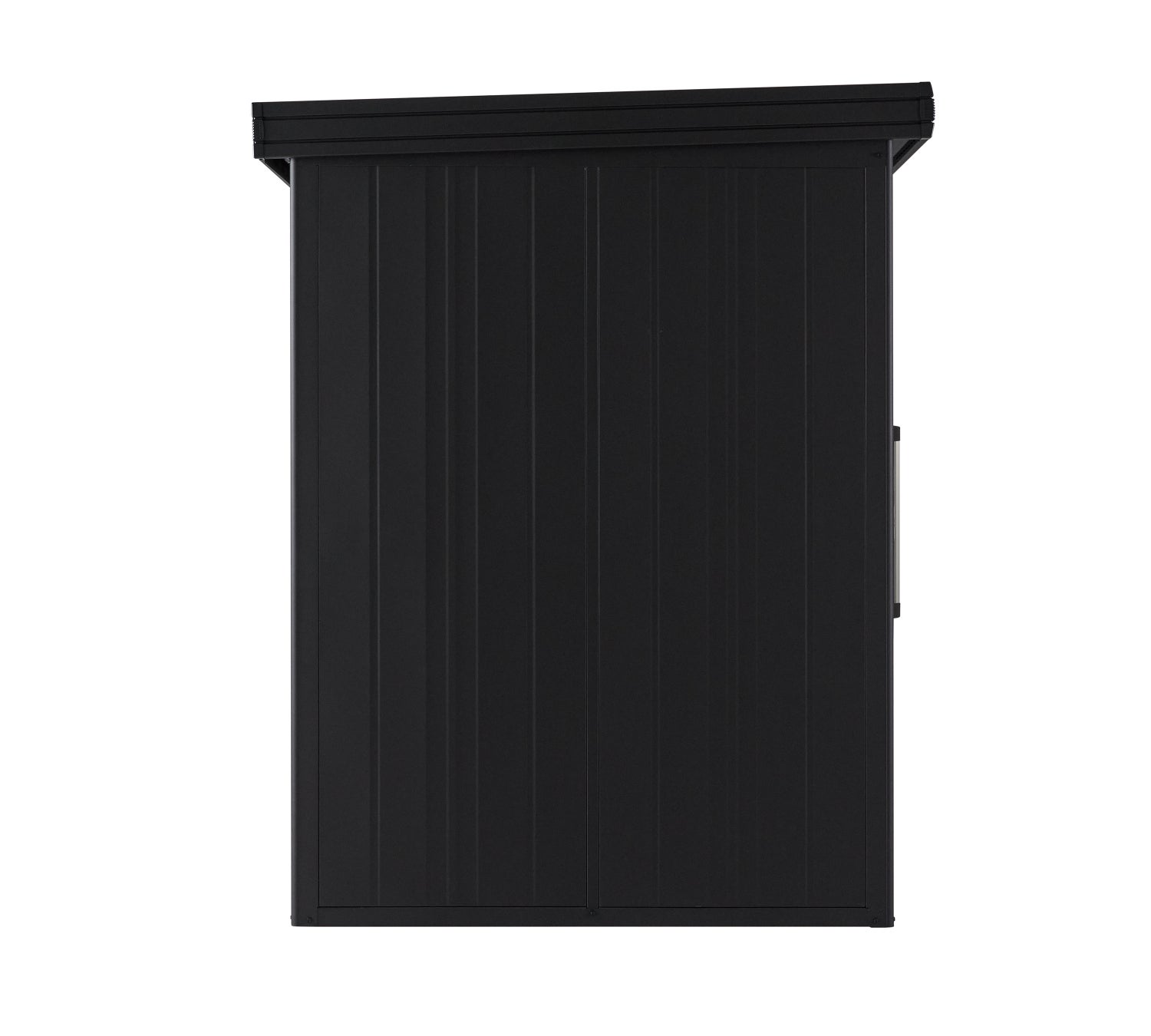 本体のブラック色は、「ヨド物置ブラックエスモ」と同じレザー調の塗装を施したマットな質感が特長です。扉色は2色で、本体と同色の「ブラック(BK)」または木目柄の「ショコラウッド(CW)」からお選びいただけます。扉色「ブラック(BK)」はブラックエルモ限定色です。