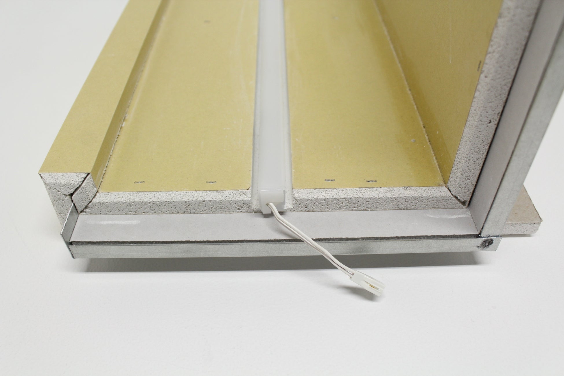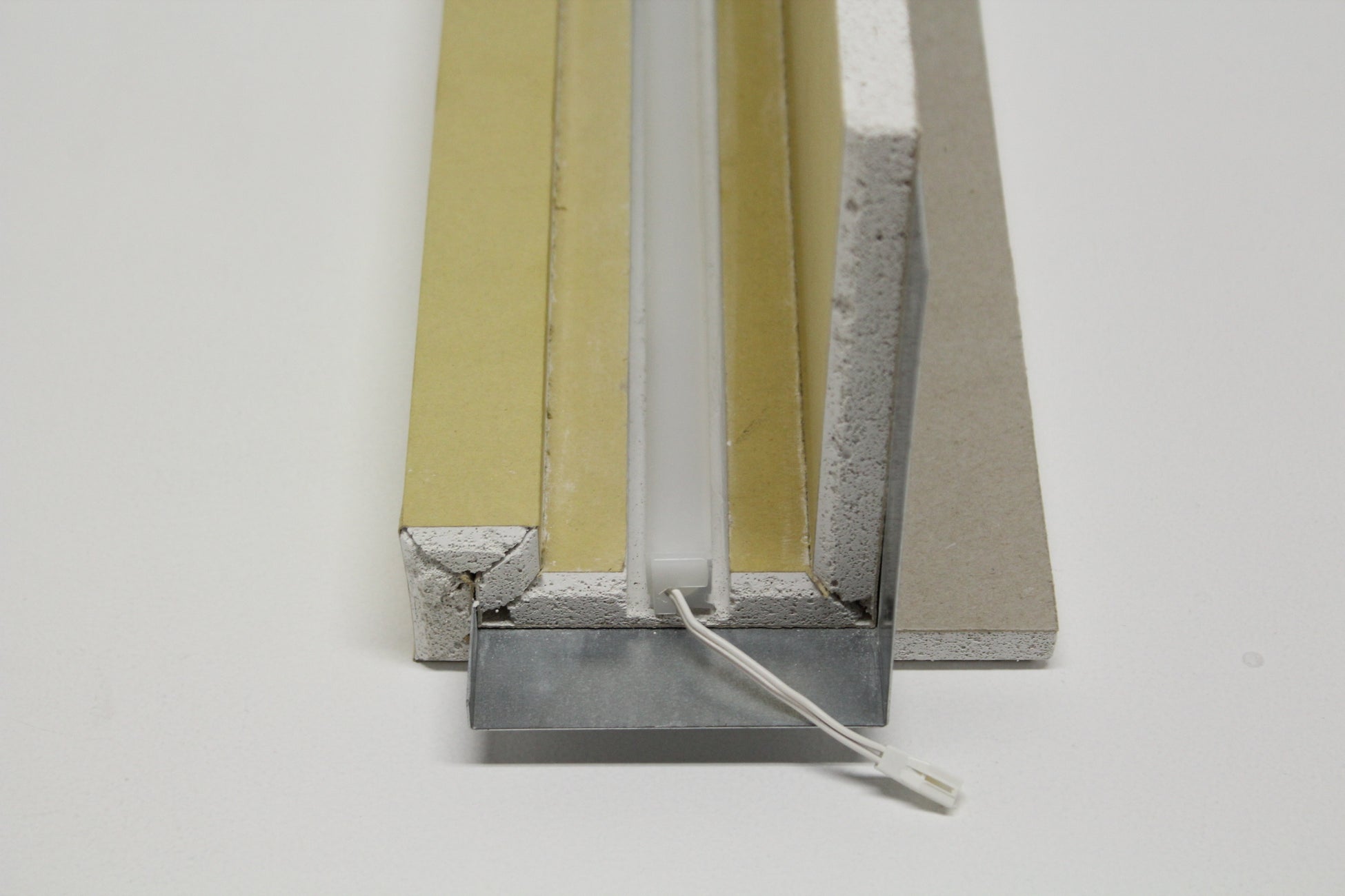 石膏ボード成形ユニットJUPITAの間接照明ラインナップを対象に、照明台座面に使用する器具の巾で溝掘り・スキマを設けるサービスです。