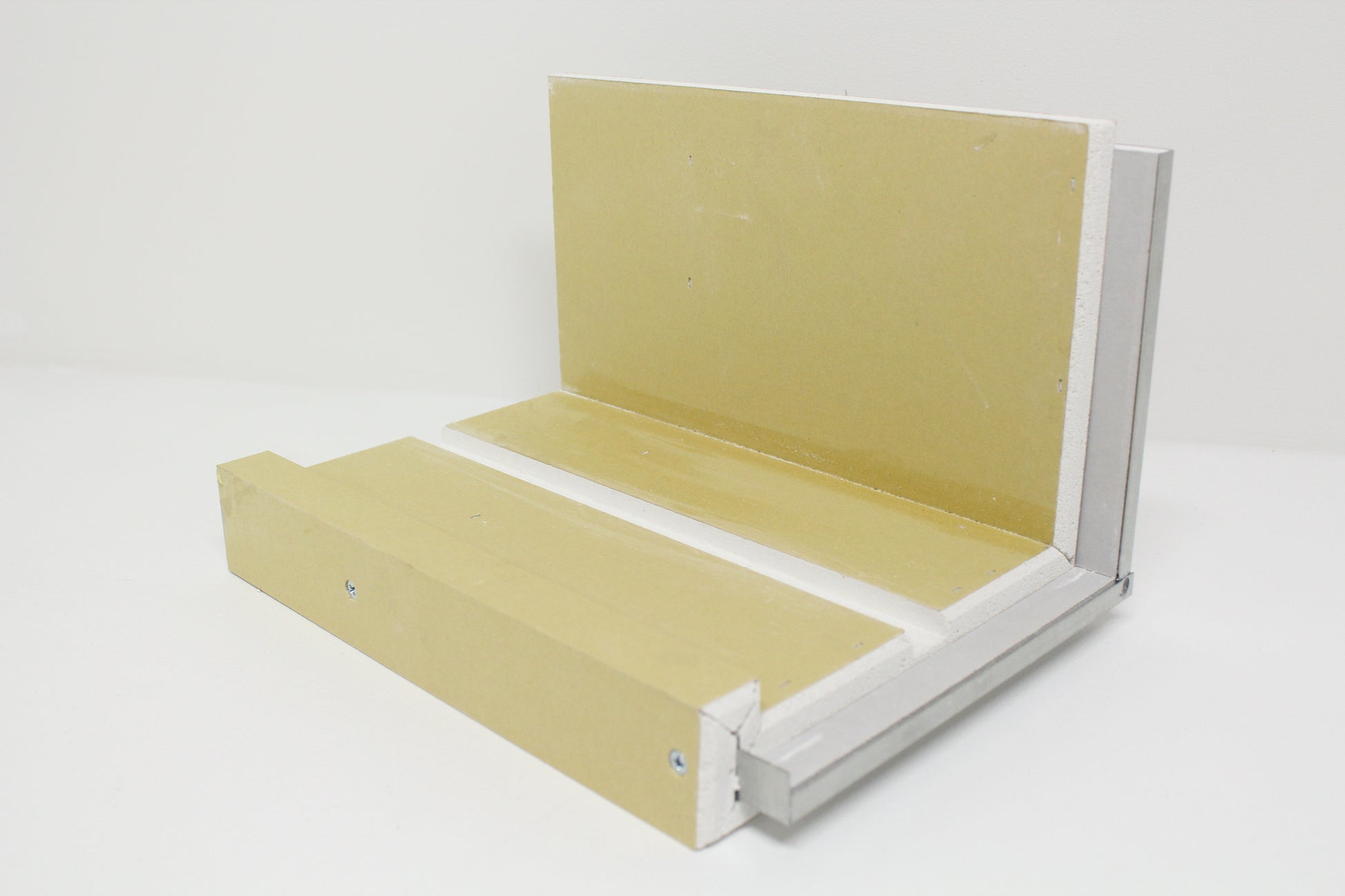 器具がマグネット式の場合、芯材に鉄板を使用するタイプ(JP-J型、JP-J-L型)では、石膏ボードを完全に分断し、器具巾のスキマを設けることで位置を固定することもできます。