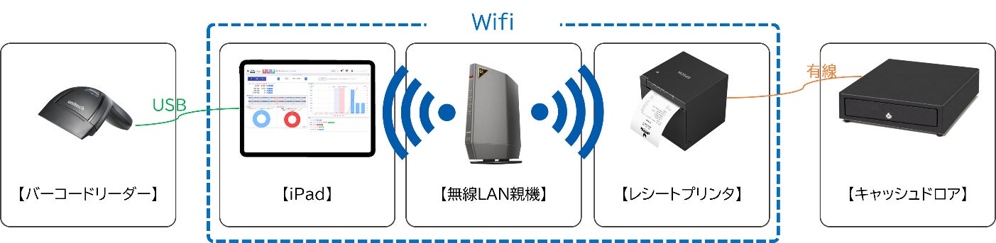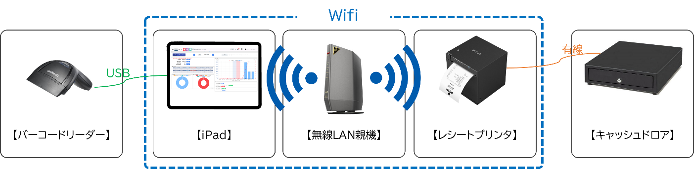 SaaS型システムのため、常に最新のバージョンでご利用いただけます。またサブスク契約のため、ライトに導入していただけます。加えて、オプション周辺機器(レシート機/キャッシュドロア/バーコードリーダー)との連携も可能です。