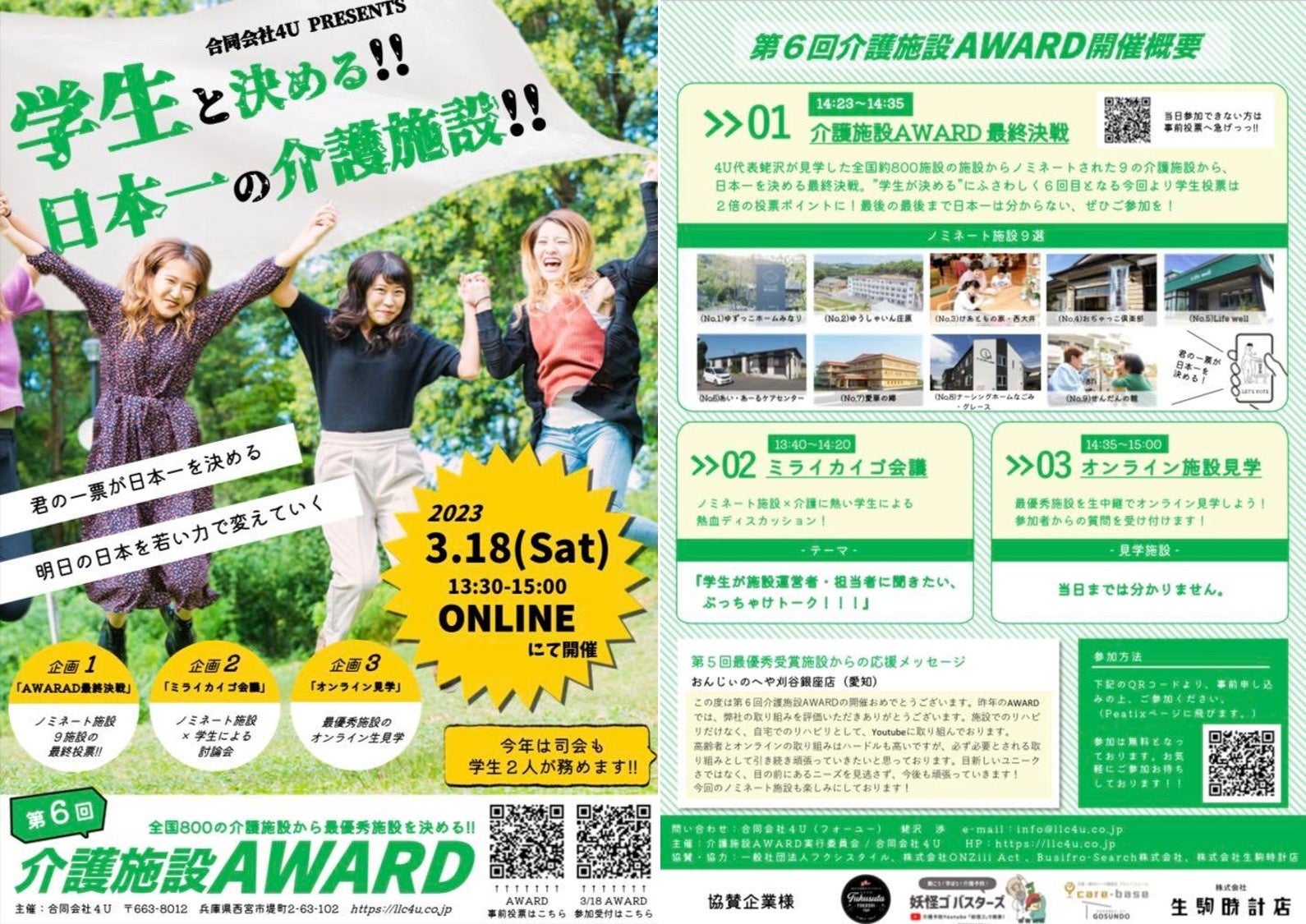 【学生と決める日本一の介護施設!】全国800の高齢者施設から最優秀施設を決定!!第6回介護施設AWARD2022。