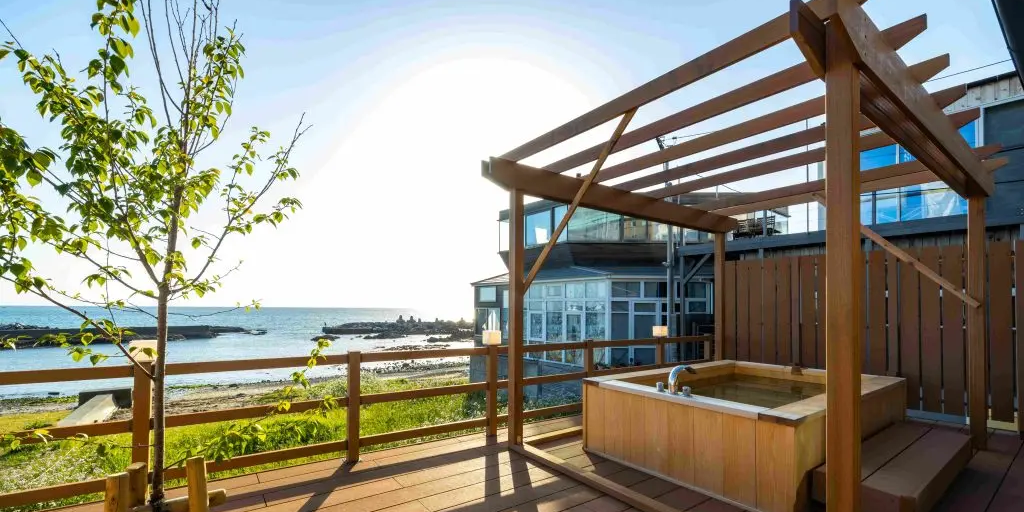 海岸に佇む一棟貸しの絶景露天風呂付き古民家別荘。