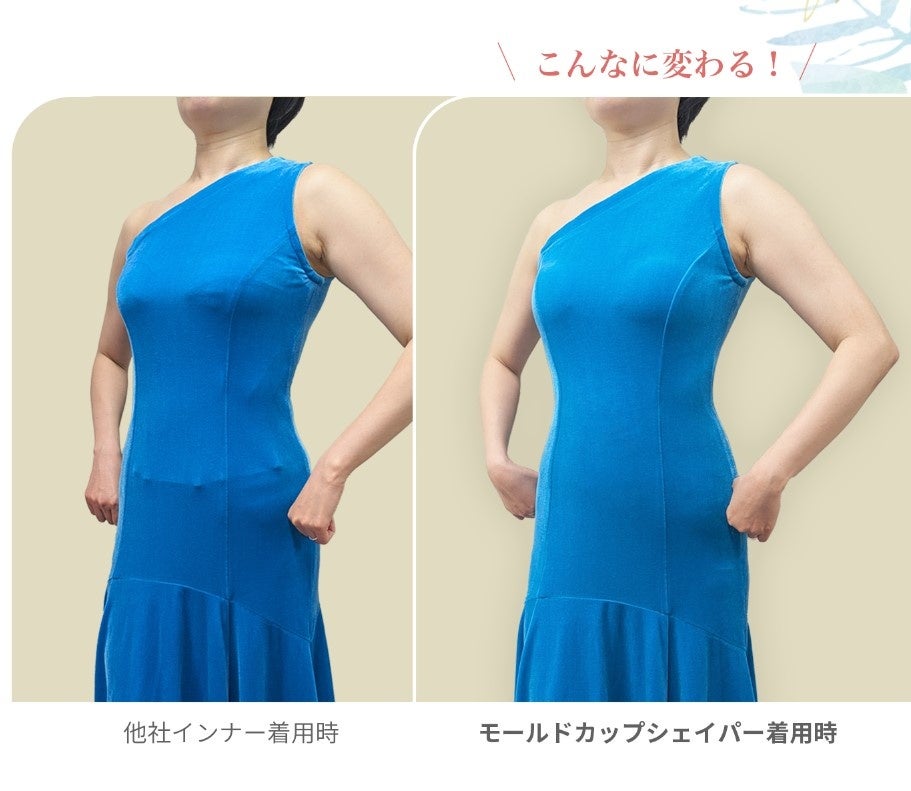 フラダンサーの声から生まれたラウラクスの新商品!「モールドカップシェイパー」①寄せ上げモールド成型カップ ②ボーン不使用 ③ヒップ下丈 薄手のフラドレスやベロアドレスにも響きづらい新設計!