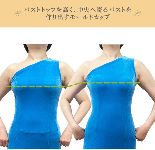 また、モールドカップながらバストが中央に寄りやすく、横広がりを抑える効果も。