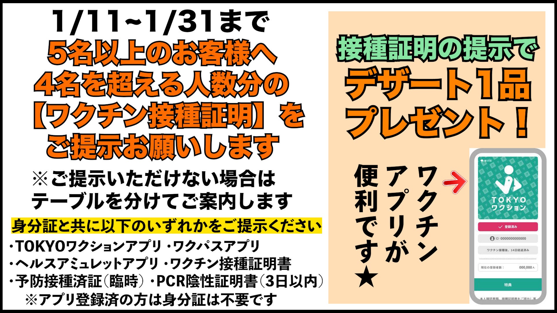※ご提示いただけない場合はテーブルを分けてご案内となります