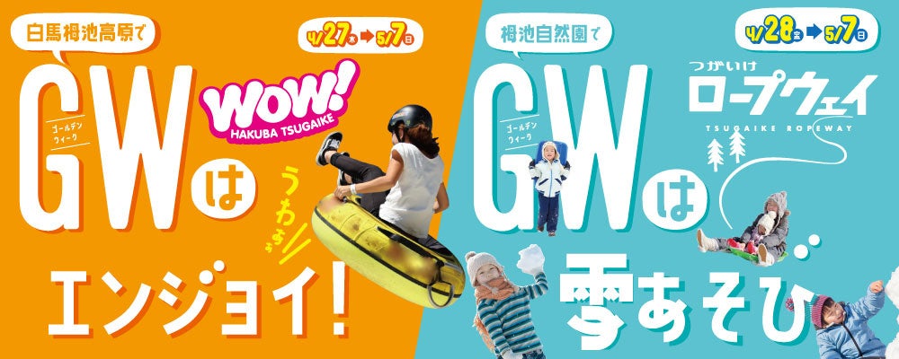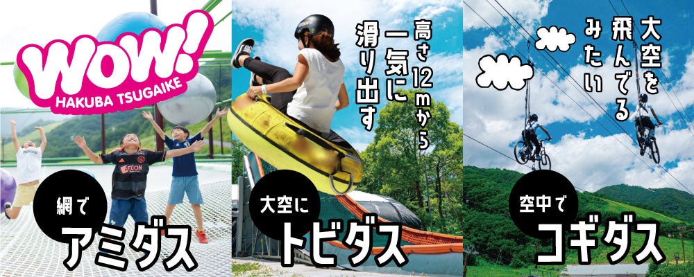 つがいけマウンテンリゾートの新感覚アクティビティ施設「白馬つがいけWOW!」のゴールデンウィーク特別営業と、栂池ロープウェイ春期運行のご案内