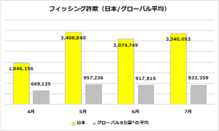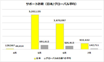 フィッシング詐欺は日本が最多で、依然として増加傾向 サポート詐欺は7月に一時減少