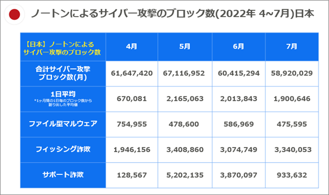 消費者向けセキュリティブランド「ノートン」は、2022年6月と7月に日本でブロックしたサイバー攻撃数を公表いたします。