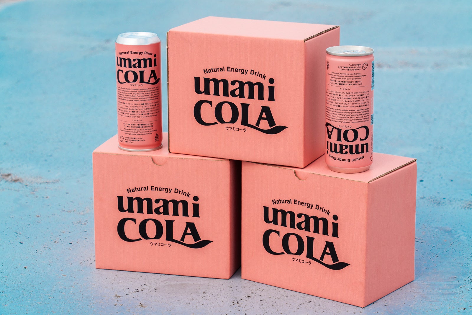 また「UMAMI COLA」は天然のエナジードリンクとしてもお楽しみいただけます。必須アミノ酸含む全てのアミノ酸など350種の栄養成分を含む「麹甘酒」をベースに、ヨーロッパで「万能の薬箱」と呼ばれるエルダーフラワー、インドで「不老不死の霊薬」とされるトゥルシー、沖縄で「長寿の秘訣」と言われるシークヮーサーを原材料に使用しており、エナジードリンクに含まれているアルギニンやナイアシン、BCAA、GABA、ビタミンB群などの成分が含まれています。