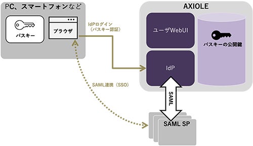 <AXIOLEとパスキー(IdP認証時)の概略図>