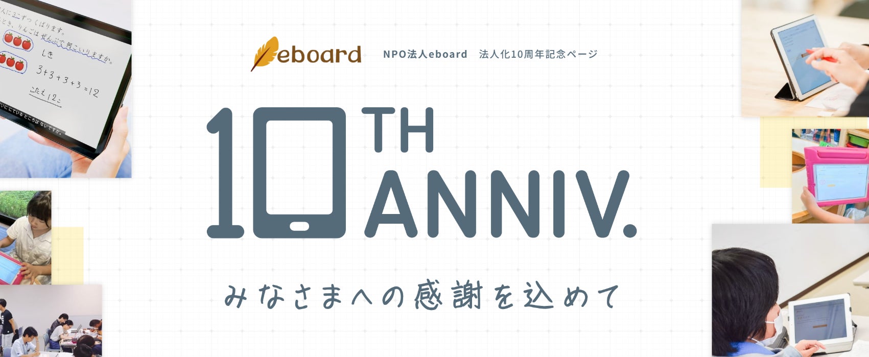 NPO法人eboardは、法人設立10周年を記念し、これまでの活動へのご支援に対する感謝を伝える特設サイトをオープンしました。