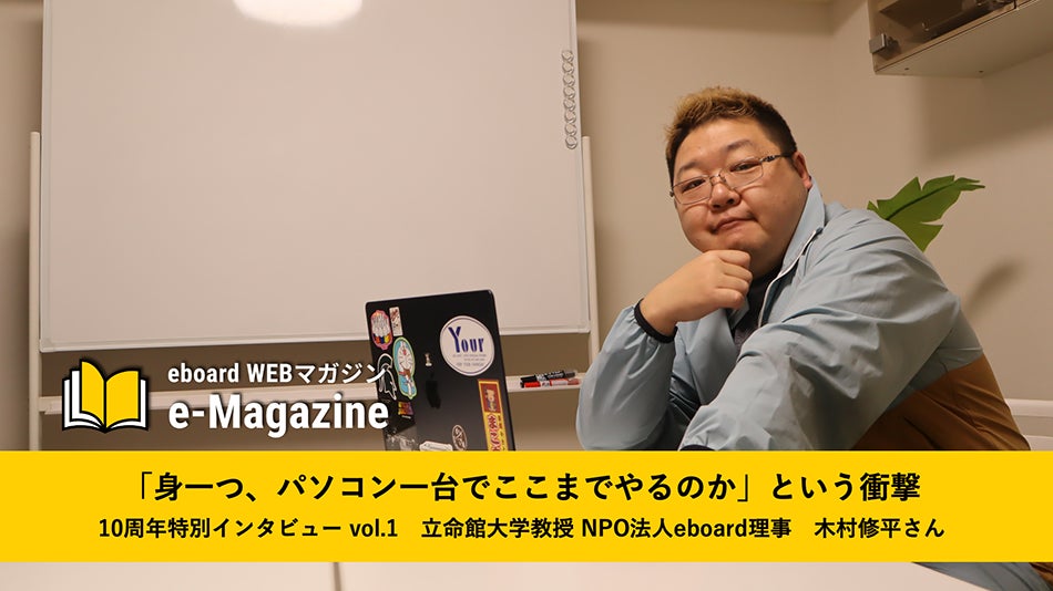 2013年12月5日、現・代表の中村を中心に任意団体として活動をしてきたeboardは、NPO法人としての活動をスタートしました。今では、誰もが毎日のように使うスマホやYouTubeが、本格的に普及し始めたころ。当然学校に1人1台の端末などなく、パソコン教室が主流だった時代。そんな設立前夜を、eboardの理事としてご参画いただく立命館大学・木村先生とふりかえります。