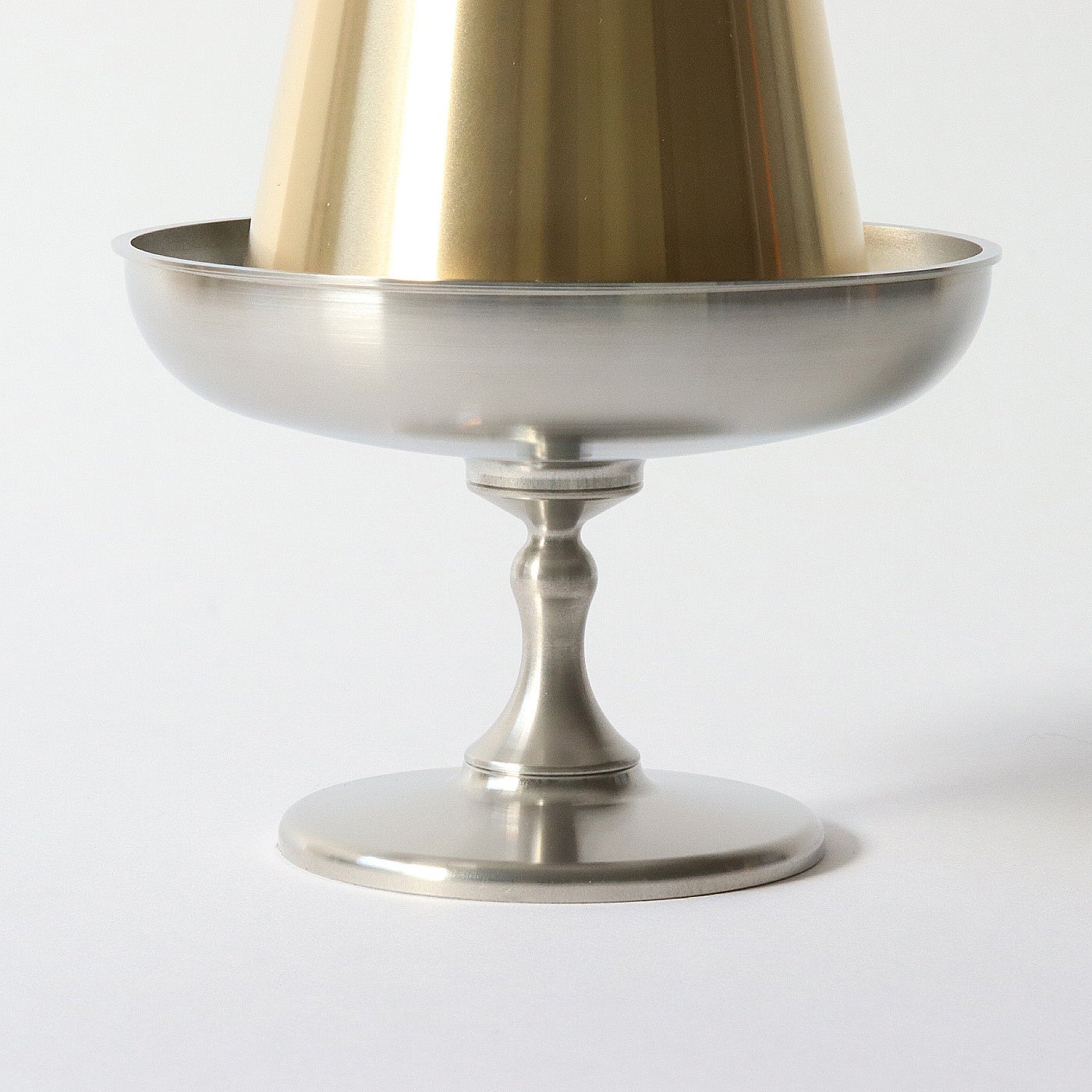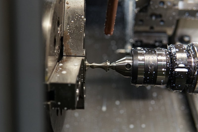 ステンレス製の脚付きカップは旋盤という機械を使用して、ステンレスのブロックから削り出しています。