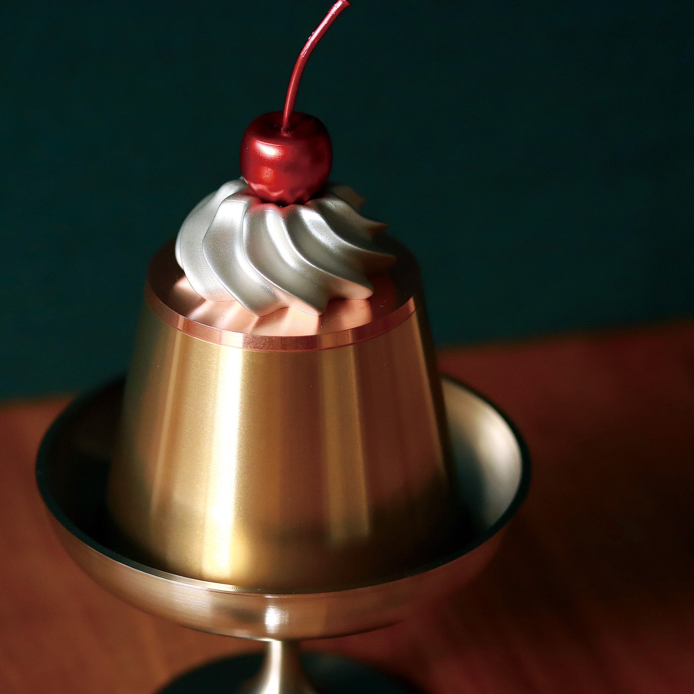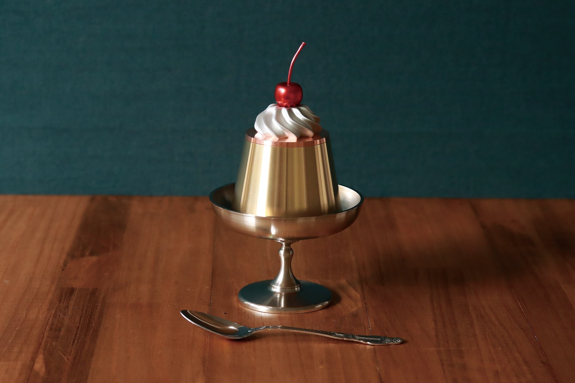 機械部品や精密部品の設計・加工をおこなう山形の金属加工会社「有限会社ヒカルマシナリー」とユニークな商品企画を専門におこなう京都の企画会社「株式会社2時」がコラボしてつくった「金属でできた固めプリン」が12月23日(金)よりヒカルマシナリーのオンラインショップで販売を開始しました。プリンはアルミ、銅、真鍮、ステンレスといろいろな種類の金属でつくられており、金属の光沢感や質感の違いを楽しむことができます。プリンのカラメル部分はフタになっており、開けると小物入れとして使えます。金属加工会社ならではの技術と職人技でつくられた金属製のプリンです。インテリアのアクセントとして飾り、うっとり眺めてみてはいかがでしょう。